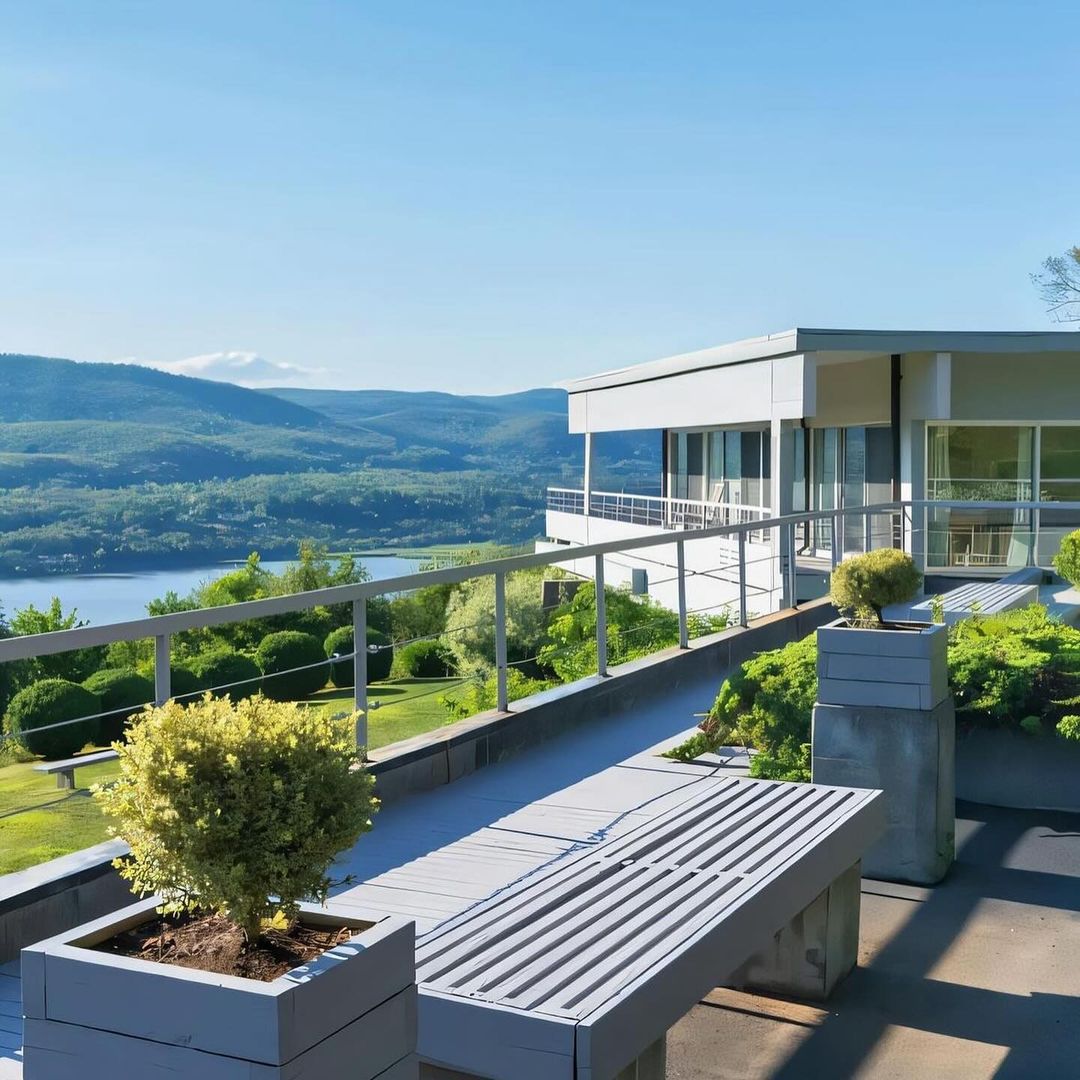The beautiful and secluded house offers a stunning 180 degree view of the Hudson river.